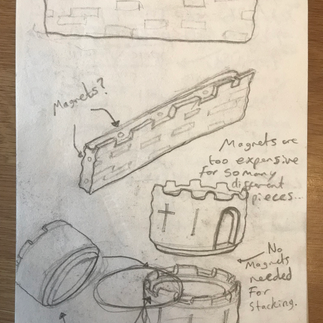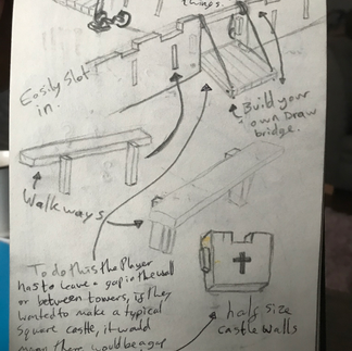 I feel like I'm heading towards a more finalised idea with this project, I was thinking about how the play could be different and also how the castle could look different to the typical four walls and a draw bridge image. I want it to be customisable, so that it can be a castle for a fairy, a princess, an evil villain, a knights castle, a broken/defeated castle, and maybe even a castle ruin like we'd find in our modern world, but it would also be great is this castle, or parts of it atleast could be transferrable, these parts can turn into something else, can be used in different games etc..